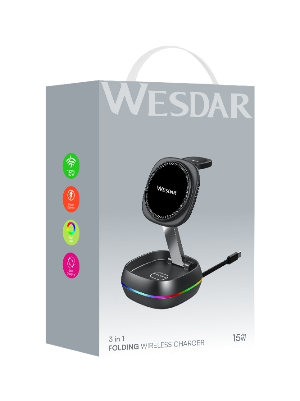 • Ana Özellikler: Katlanabilir tasarım, RGB ışık, 3-ü-1 çoklu şarj desteği, hızlı kablosuz şarj, entegre güvenlik korumaları